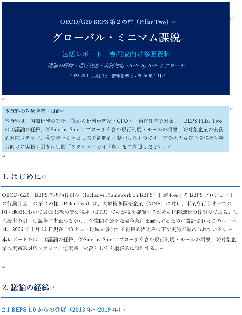 BEPS Pillar Two グローバル・ミニマム課税:包括レポート(2026年版)─プロフェッショナル向け包括的分析レポート(チートシート)について─